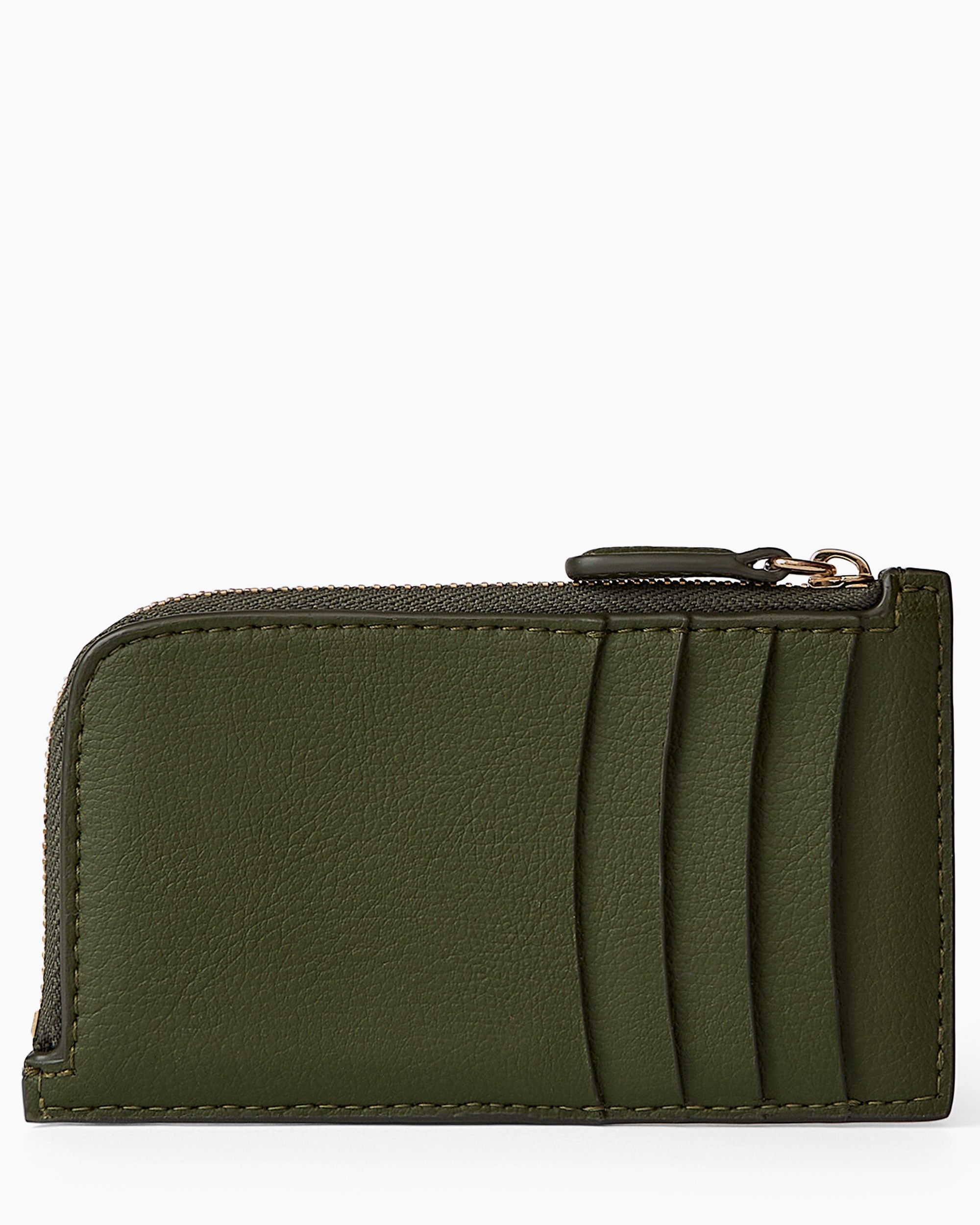 Crafted in cactus leather, the Zip Card Holder is designed to carry the essentials with ease. Four exterior slots hold your most-used cards, while the zip pocket secures coins and folded bills. Sleek and compact, it offers quiet practicality in a refined form made for every day.
